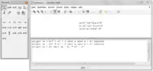 Icono de Math Math Es una aplicación diseñada para la creación y edición de fórmulas matemáticas. Utiliza un lenguaje de marcado (XML) para representar fórmulas, tal como se define en la especificación OpenDocument.[50] Dichas fórmulas pueden incorporarse fácilmente dentro de otros documentos de la suite LibreOffice, tales como los documentos creados por Writer, o Calc incrustándolas al documento como objetos OLE.[51] Math admite múltiples tipografías y puede exportar fórmulas a los formatos de archivo ODF, PDF o MathML.[52] LibreOffice Math 6.4 en Ubuntu