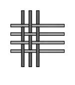 - Ligamento tafetán cruzado o ligamento esterilla, (en inglés, basketweave), otra variación donde dos o más hilos se tejen como uno solo en urdimbre y trama simultáneamente; como ejemplo, el panamá.