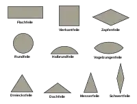 - Limas para metal: de diversas formas y granulado. Si se hace una división según su sección existen: