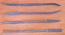 - Esta obra contiene una traducción derivada de «File(Tool)» de Wikipedia en inglés, publicada por sus editores bajo la Licencia de documentación libre de GNU y la Licencia Creative Commons Atribución-CompartirIgual 4.0 Internacional.