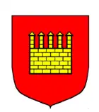 Sus armas primitivas constaban de un muro dorado con cinco almenas en campo de gules[5][6], aunque también se hay variaciones en las que entre las almenas asoma un jefe blandiendo una espada.[7] Igualmente, conforme el linaje fue entroncando con distintas familias sus heráldica fue cambiando;[8]