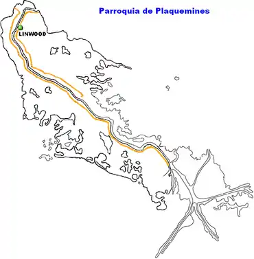 Localización de Linwood en el mapa de la Parroquia de Plaquemines.