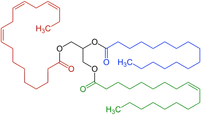 Los triglicéridos son hidrolizados a diacilglicerol y una molécula de ácido graso, luego el diacilglicerol se convierte en monacilglicerol y otro ácido graso; finalmente, el monoacilglicerol se hidroliza a glicerol y un tercer ácido graso. Estas reacciones bioquímicas son inversas a la lipogénesis. A la lipolisis también se le llama movilización de las grasas.[1]