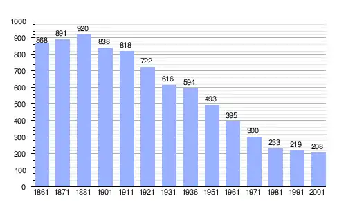 | Gráfica de evolución demográfica de Livo entre 1861 y 2001 |