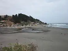 Extensa Playa de arenas grises, con dunas de gran tamaño y detenidas por el Bosque de Llico.