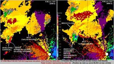 - SPC.NOAA.gov («Bat-eating supercell», supercélula come-murciélagos, del National Weather Service de EE. UU. (19 de marzo de 2006); en inglés.
