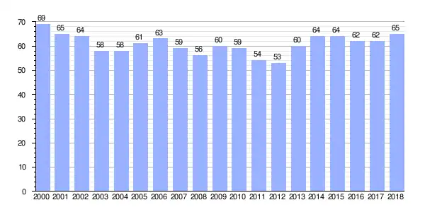 | Gráfica de evolución demográfica de Logrosa (parroquia) entre 2000 y 2018 |