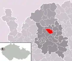 Se encuentra ubicada al norte de la región, cerca de la orilla del río Ohře —un afluente izquierdo del río Elba—, y a poca distancia al sur de la parte occidental de los montes Metálicos y de la frontera con Alemania.[1]