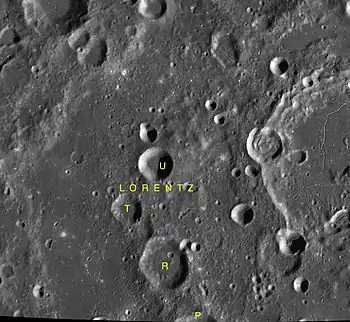 Por convención estos elementos son identificados en los mapas lunares poniendo la letra en el lado del punto medio del cráter que está más cercano a Lorentz.