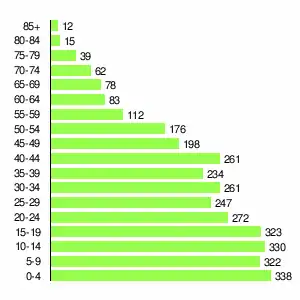 | Gráfico de la distribución de la población de Los Antiguos según grupos de edad |