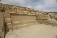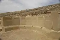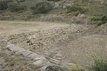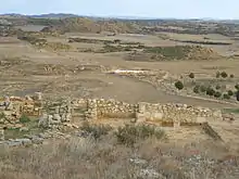 Excavada por José Galiay[64] y documentada de nuevo por Antonio Beltrán,[65] una parte de la segunda terraza citada, se encuentra en la actualidad de nuevo en estudio, habiendo descubierto en las últimas excavaciones un tramo de la muralla que rodeaba esta terraza, con el basamento de una de sus torres e incluso el quicio de una puerta de la muralla.[66]