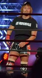 ![]() Tetsuya Naito en 2016 con una camiseta mostrando uno de los logos del stable. | ||