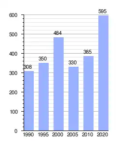 | Gráfica de evolución demográfica de Los Migueles entre 1990 y 2020 |