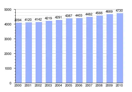 | Gráfica de evolución demográfica de Los Rosales entre 2000 y 2010 |