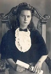 Como en dicha localidad no había colegiatura, sus padres tuvieron que internarla en un colegio de señoritas en Curitiba (Brasil), el Gimnasio Sagrado Corazón de Jesús, en donde permaneció entre 1937 y 1942.