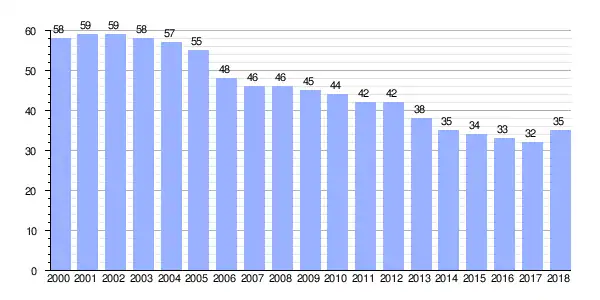 | Gráfica de evolución demográfica de Loureda (aldea) entre 2000 y 2018 |