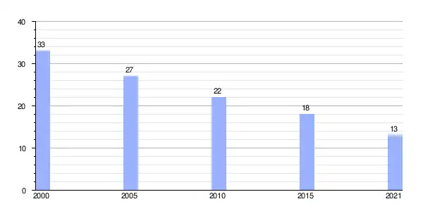 | Gráfica de evolución demográfica de Loureiro (aldea) entre 2000 y 2021 |