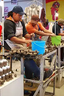 La mayoría de los alfareros trabajan en talleres familiares, con todos participando en el proceso, estas familias tienden a ser más reservadas acerca de sus prácticas y rara vez cooperan con alguien ajeno para cualquier aspecto sobre la fabricación de la cerámica. La superstición puede rodear el proceso, sobre todo durante la cocción, con los alfareros cuidándose del «mal de ojo» de los vecinos,y con la construcción de pequeños altares para la realización de bendiciones cristianas e indígenas. Tanto los hombres como las mujeres moldean las piezas, pero los hombres generalmente hacen las piezas más grandes (debido al peso) y son los encargos del horno. Los niños empiezan a trabajar con la arcilla desde los seis años,haciendo pequeños elementos decorativos. Por lo general, comienzan a realizar vasijas alrededor de los catorce años y dominan el proceso a los dieciocho años. El hombre a cargo del taller familiar, se encuentra a menudo, en la edad de jubilación y su principal objetivo es la enseñanza y supervisar la producción. Sin embargo, muchos de estos talleres están desapareciendo ya que los ancianos dejan de trabajar por completo y los niños y jóvenes buscan otras carreras más rentables.[23]