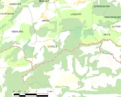 - Ubicación de Lucelle y de sus comunas limítrofes en una mapa de Francia (enlace roto disponible en Internet Archive; véase el historial, la primera versión y la última).
