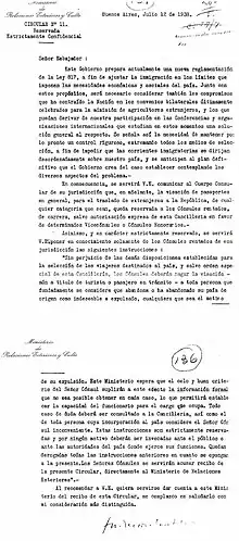 Esta acción de Irigoyen habría estado en concordancia con la circular n.º 11 del año 1938 de la Cancillería Argentina, que intentaba frenar el ingreso en el país de perseguidos por el nazismo.[4]