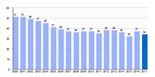 | Gráfica de evolución demográfica de Luna[2] entre 2000 y 2017 |