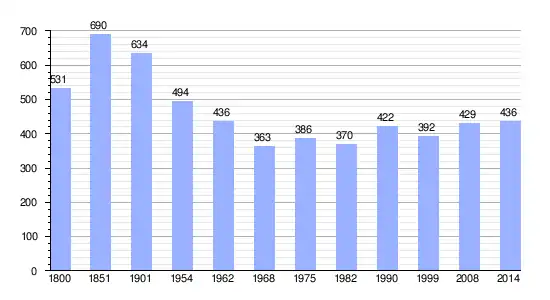 Los datos demográficos contemplados en este gráfico de la comuna de Lutz-en-Dunois[4] se han cogido de 1800 a 1999 de la página francesa EHESS/Cassini, y los demás datos de la página del INSEE.[5]
