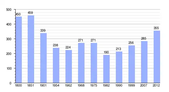| Gráfica de evolución demográfica de Luxe-Sumberraute entre 1800 y 2012 |