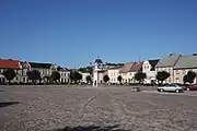- La iglesia parroquial de la Asunción de la Santísima Virgen María y de San Juan Bautista. Se encuentra al noreste de la Plaza del Mercado, en la calle Pniewska. La iglesia del gótico tardío está orientada, construida con ladrillos, no enlucida. Tiene tres naves y una cuarta, más corta por el norte, y un magnífico pórtico por el sur. Los interiores se cubren con bóvedas góticas: de crucería en la nave principal y presbiterio, y de estrella en las naves laterales, en capilla, sacristía y pórtico. El mobiliario interior del estilo barroco tardío data de finales del siglo XVIII. En el campo principal del altar principal se encuentra un cuadro de la Asunción de la Santísima Virgen María del año 1860 de Władysław Simon, así como esculturas de San Pedro, de San Juan evangelista y de San Juan Bautista. De los cinco altares laterales, el arquitectónico más impresionante contiene una pintura del siglo XVII de la Virgen María y el Niño. Frente a la iglesia, cerca del pórtico sur, hay una escultura de piedra de Nuestra Señora Inmaculada, realizada entre 1880 y 1890, sobre un pedestal más nuevo. A finales del siglo XIX se construyó junto a la iglesia la capilla funeraria de la familia Tyszkiewicz, actualmente capilla de San Pedro construida con ladrillos amarillos y parcialmente enlucida, en forma de miniatura de una basílica paleocristiana de tres naves. Cerca hay una rectoría de ladrillo, construida en la década de 1920.