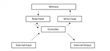 Una NTM está formada por dos componentes: un controlador de red neuronal típico y una matriz de memoria con la que interactúa. Como en la mayoría de redes neuronales, el controlador se comunica con el usuario mediante vectores de entrada y salida. Estos vectores de salida son los que sirven para parametrizar las operaciones de lectura y escritura sobre la memoria, y se les llama "cabezas".
