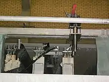 El depósito de la máquina es básicamente un recipiente de almacenamiento que tiene una capacidad para aproximadamente 15 minutos de funcionamiento. Este tiempo es suficiente para permitir que cualquier variación en la consistencia del material recibido sea nivelada por la acción de la válvula de peso base que recibe retroalimentación del escáner de medición de peso base en línea. (Nota: muchas máquinas de papel controlan por error la consistencia que sale de la caja de la máquina, lo que interfiere con el control del peso base).[nota 1]