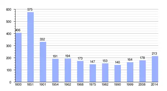 Los datos demográficos contemplados en este gráfico de la comuna de Méricourt-sur-Somme[4] se han cogido de 1800 a 1999 de la página francesa EHESS/Cassini, y los demás datos de la página del INSEE.[5]