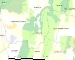 - Situación de Mérona en un mapa de Francia y de comunas limítrofes (enlace roto disponible en Internet Archive; véase el historial, la primera versión y la última). (en francés)