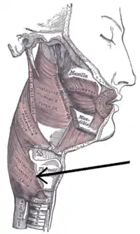 ![]() Músculos de la faringe y la mejilla. (Músculo constrictor faríngeo inferior visible en la parte inferior izquierda.) | ||