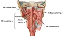 Músculo palatofaringeo inferior con respecto al salpingofaringeo e interior con respecto a los constrictores