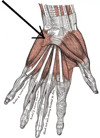El músculo palmar corto deprime la cuenca de la palma al tensar la piel sobre la eminencia hipotenar y forma un surco nítido, lo que podría mejorar la función de agarre.[1]