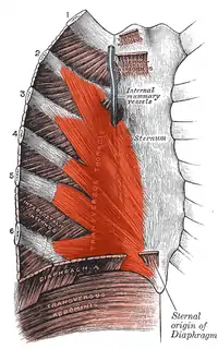 ![]() El músculo transverso del tórax (resaltado) | ||