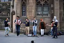 La música folclórica italiana tiene una historia profunda y compleja.[30] Debido también a la tardía unificación estatal del país, la música tradicional italiana, en sus muchos aspectos regionales y territoriales, no presenta un carácter homogéneo. Más bien, cada región y comunidad posee una tradición musical única que refleja la historia, la lengua y las peculiaridades socioculturales específicas de ese lugar en particular.[31] Estas tradiciones reflejan la posición geográfica de Italia en el sur de Europa y en el centro del Mar Mediterráneo. Las influencias musicales históricas relacionadas con la antigüedad, como las celtas, griegas antiguas y romanas, dejan espacio a las dictadas por la áspera geografía italiana, que refleja las condiciones de un territorio peninsular e insular enclavado entre los Alpes, los Balcanes y el Norte de África, el cual presenta una combinación de diferentes estilos musicales tradicionales que coexisten en las proximidades.