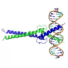 - «X-ray structures of Myc-Max and Mad-Max recognizing DNA. Molecular bases of regulation by proto-oncogenic transcription factors». Cell 112 (2): 193-205. January 2003. PMID 12553908. doi:10.1016/S0092-8674(02)01284-9.