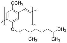 El poli[2-metoxi-5-(3’,7’-dimetiloctiloxi)-1,4-fenilenvinileno es un polímero conductor de la familia de los fenilenvinileno (PPV), lo cual lo hace un gran candidato como un material de emisión en dispositivos de emisión de luz como los diodos y dispositivos fotovoltaicos: también es soluble en agua y forma fácilmente capas delgadas, una característica que lo hace óptimo para su utilización en la electrónica orgánica. La facilidad del transporte de carga del MDMO-PPV se atribuye a una mejor interacción entre las cadenas facilitads por una estructura más regular del PPV. Así mismo esta facilidad de transporte de carga ha sido utilizada para la fabricación de dispositivos fotovoltaicos de heterounión con un alto factor de llenado con la mezcla de MDMO-PPV y PCBM. El MDMO-PPV es soluble en tolueno, xileno, THF, cloroformo, clorobenceno y ciclohexano.