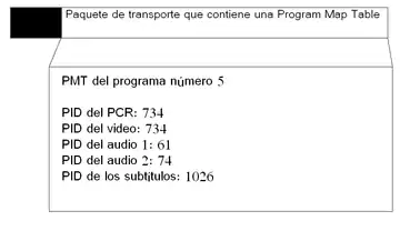 A continuación se hace una descripción de un paquete de datos conteniendo una tabla PMT.