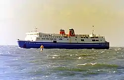 ![]() Ferry Hakozaki, el barco hermano del MV St. Thomas Aquinas. Este buque también fue vendido a Filipinas y pasó a llamarse MV SuperFerry 5 y más tarde MV St. Joan of Arc. | ||