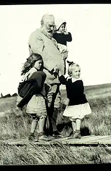 Entre sus primeros recuerdos de su abuelo estaban las ocasiones en que los Bell socializaban con sus diez nietos. El biógrafo y ganador del premio Pulitzer, Robert V. Bruce, autor del trabajo más autorizado sobre Bell, lo describió como poseedor de "la majestuosidad de Moisés y la benevolencia de Santa Claus". Hubo muchas ocasiones alegres en las que sus nietos se sentaban en su regazo y, cuando se lo ordenaban, pellizcaban la nariz de Bell "para producir un ladrido de perro, tirando de su cabello para un balido de oveja y, a modo de clímax, tirando de su barba de Papá Noel para el gruñido deliciosamente feroz de un oso".[1][6]