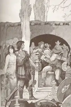 Los caballeros atacan el castillo con sigilo, matando a sus nueve porteros y sus nueve perros guardianes, y entran en la sala del gigante. A su llegada, Ysbaddaden intenta matar a Culhwch con un dardo envenenado, pero es burlado y herido, primero por Bedwyr, luego por el mago Menw, y finalmente por el propio Culhwch. Con el tiempo, Ysbaddaden cede, y se compromete a dar a Culhwch a su hija con la condición de que complete una serie de tareas imposibles (anoethau), incluyendo la caza del jabalí blanco salvaje, Twrch Trwyth y recuperar el prisionero, Mabon hijo de Modron, el único hombre capaz de cazar a Drudwyn, el único perro que puede encontrar la pista de Twrch Trwyth.