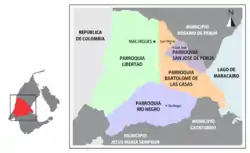 - Parroquia Bartolomé de las Casas (Desde el noreste hasta el sureste del municipio).