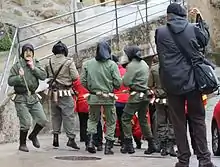 - Pañuelo negro a la cabeza. Tenía dos funciones: ocultación de la cabeza (mayor anonimato)y sujeción de la máscara.
