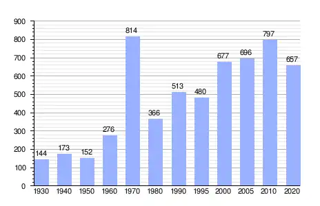 En 2020 registró una población de 657 personas, lo que corresponde al 0.52 % de la población municipal.[1][7] De los cuales 317 son hombres y 340 son mujeres.[1][7]