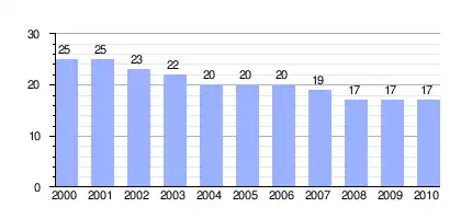 | Gráfica de evolución demográfica de Madoz entre 2000 y 2010 |