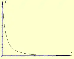 - Si la distancia entre las cargas es , al duplicarla, la fuerza de interacción disminuye en un factor de 4 (2²); al triplicarla, disminuye en un factor de 9 (3²) y al cuadriplicar , la fuerza entre cargas disminuye en un factor de 16 (4²). En consecuencia, la fuerza de interacción entre dos cargas puntuales, es inversamente proporcional al cuadrado de la distancia: