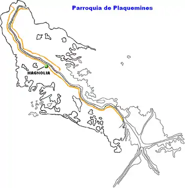 Localización de Magnolia en el mapa de la Parroquia de Plaquemines.