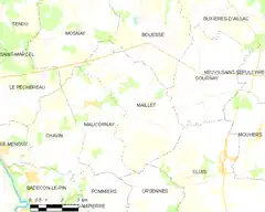 Maillet es una población y comuna francesa, en la región de Centro, departamento de Indre, en el distrito de La Châtre y cantón de Neuvy-Saint-Sépulchre.